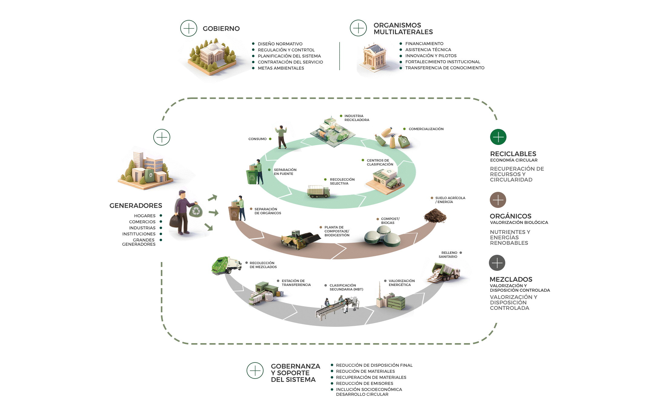 Apoyamos a organismos multilaterales en el diseño e implementación de programas de modernización del sector residuos. Brindamos asistencia técnica, estructuración de proyectos e innovación institucional que potencien inversiones sostenibles, fortalezcan capacidades locales y generen impacto medible